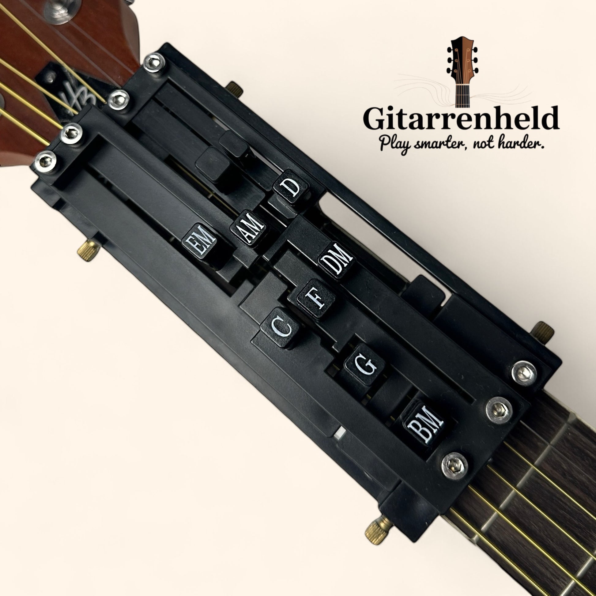 Wir empfehlen die Screw-On Variante für Gitarren mit einer kleinsten Halsbreite unter 5,3 cm und für größere Gitarren die Clip-On Variante.