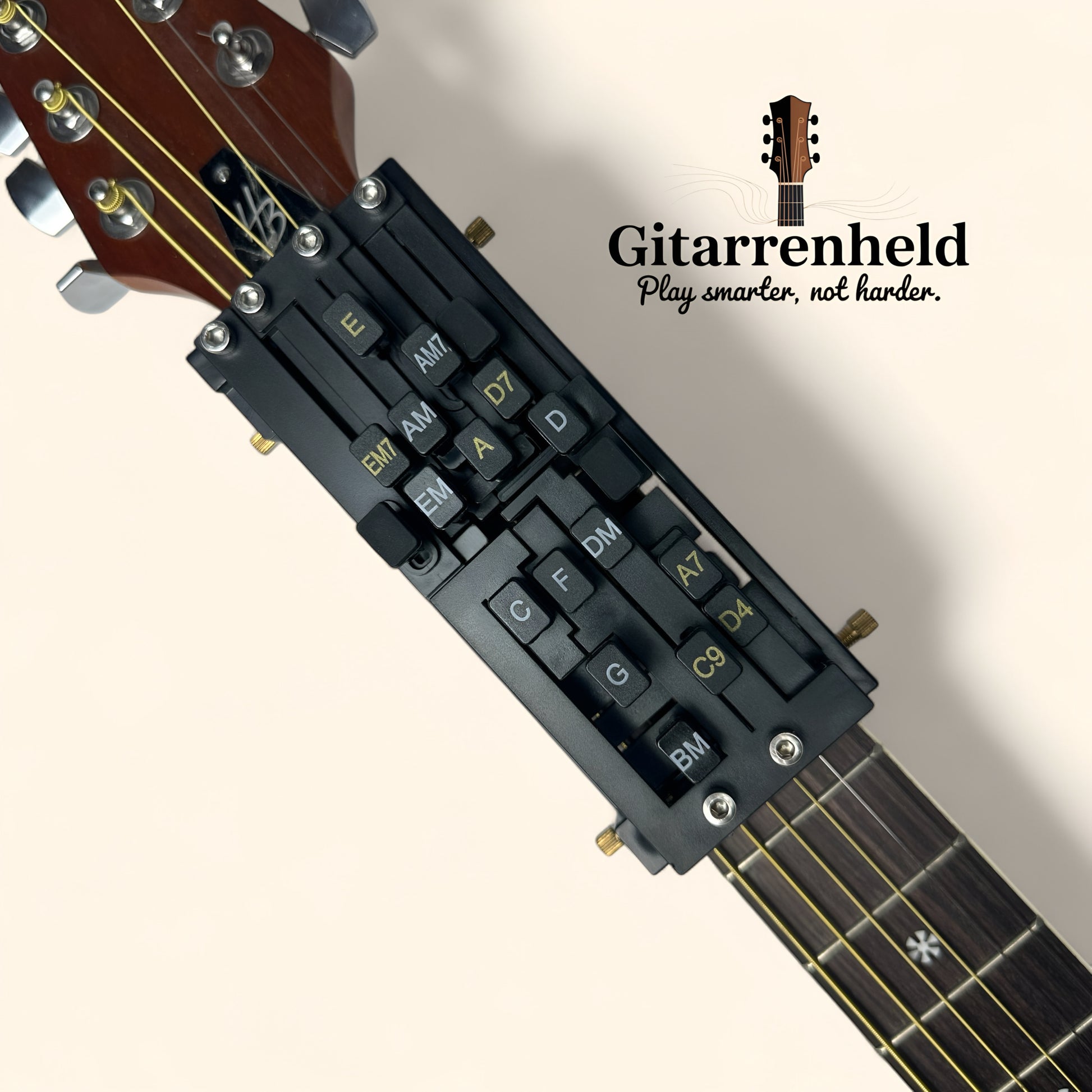 Der Gitarrenheld hilft dir, deinen Traum vom Gitarrespielen endlich wieder greifbar werden zu lassen. Einfach an deine Lieblingsgitarre anbringen, greifen, entspannt spielen und die Musik genießen – egal, ob du Akkorde lernst, Anfänger bist, lange Fingernägel oder schmerzende Hände hast.
